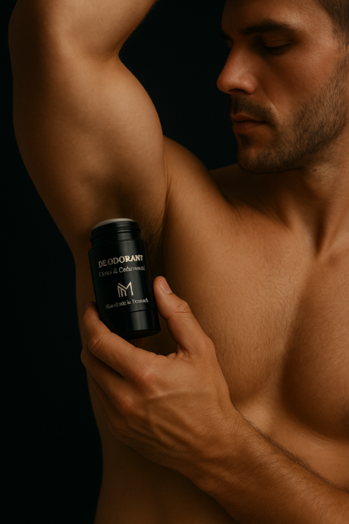 Caprylic/Capric Triglycerides giver let og plejende fugt fra kokos, der blødgør huden. Squalane tilfører silkeblød og hudidentisk fugt uden fedtet finish. Cera Alba (bivoks) beskytter huden og giver en glat, stabil konsistens, mens Candelilla Wax – en vegansk voks – skaber struktur og sikrer en blød påføring. Triethyl Citrate bekæmper lugt ved at hæmme bakterier uden at blokere porerne, og Zinc Ricinoleate indkapsler og neutraliserer kropslugt effektivt. Glyceryl Caprylate fugter og balancerer hudens mikroflora, og det antibakterielle Sage Oil-kompleks sørger for naturlig beskyttelse hele dagen. Distarch Phosphate absorberer fugt og efterlader huden tør og glat. Lemon Peel Oil tilfører en opløftende og frisk duft med rensende effekt, mens Cedarwood Oil beroliger huden og giver en varm, træagtig note. Petitgrain (Bitter Orange Leaf) Oil bidrager med en ren og grøn duft med balancerende egenskaber, og Litsea Cubeba Oil tilføjer en klar citrusnote kendt for sine rensende kvaliteter. Til sidst styrker Vitamin E (Tocopherol) huden med sin antioxidanteffekt, og Solsikkeolie bidrager med næring og stabilitet til formuleringen.
